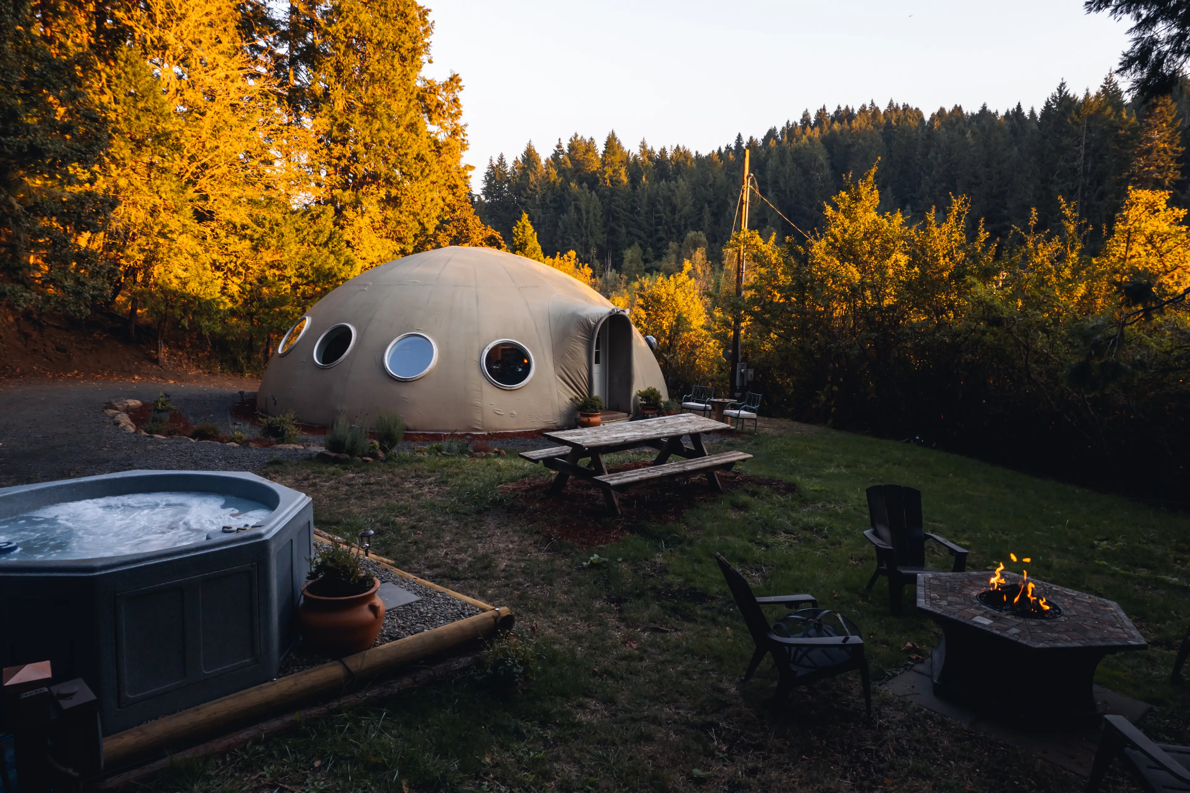The Eugene Dome is located in near vineyards and farmland so the space is private; there are no neighbors to disrupt your privacy. You will have private access and use of the space and five acres of rolling hills. The door has a code lock, so independent check-in is easy!